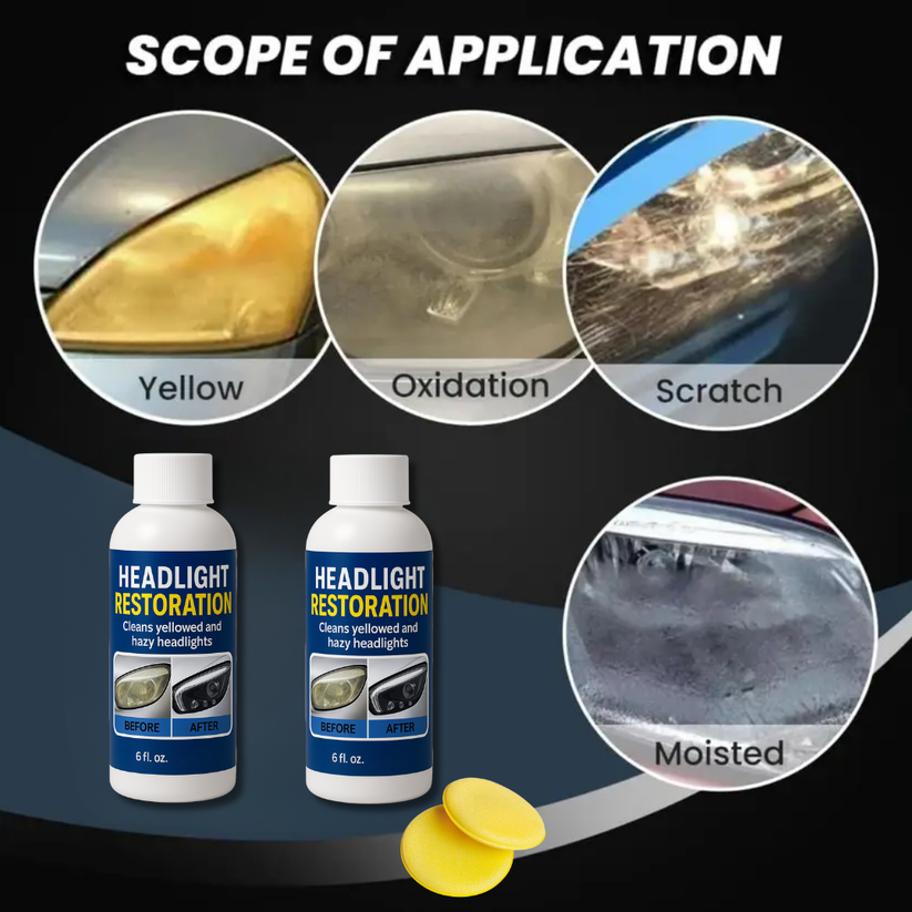Headlight Restoration: Removes yellowing, oxidation, scratches, and moisture haze from plastic headlight covers.